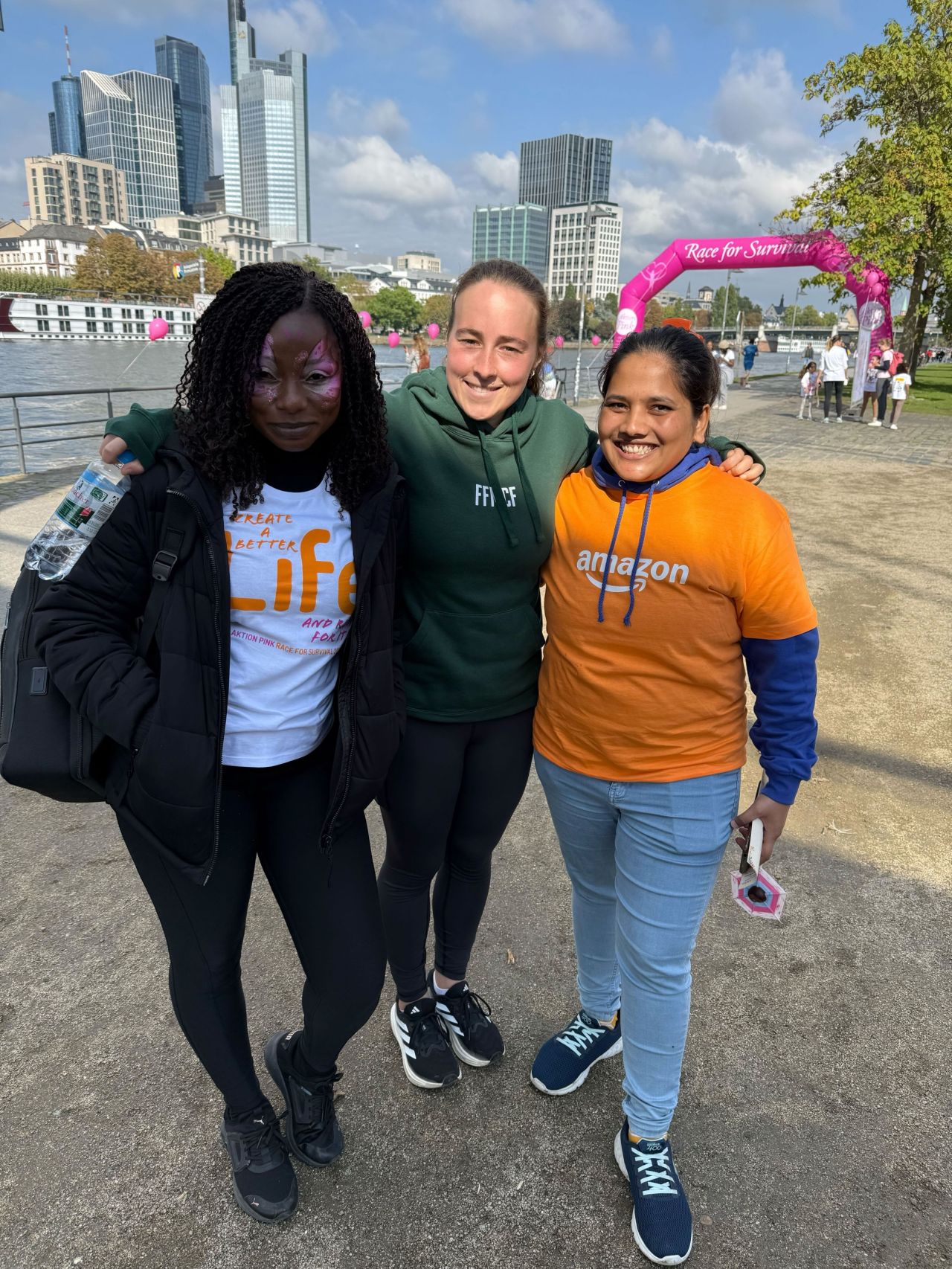 Wir danken dem AMAZON-Team (Petra Dujmovic, LaufTeam und Ardit Dani, VolunteerCrew) für die befeuernde Kooperation, der BARMER mit Emily Spitzenberg für „Barmer läuft in Pink“ sowie unseren exzellenten Mentoren Bianca Fless (Deutsche Bank) und Phillipe d’Alligny (Amazon), die zu wahren Freunden wurden.