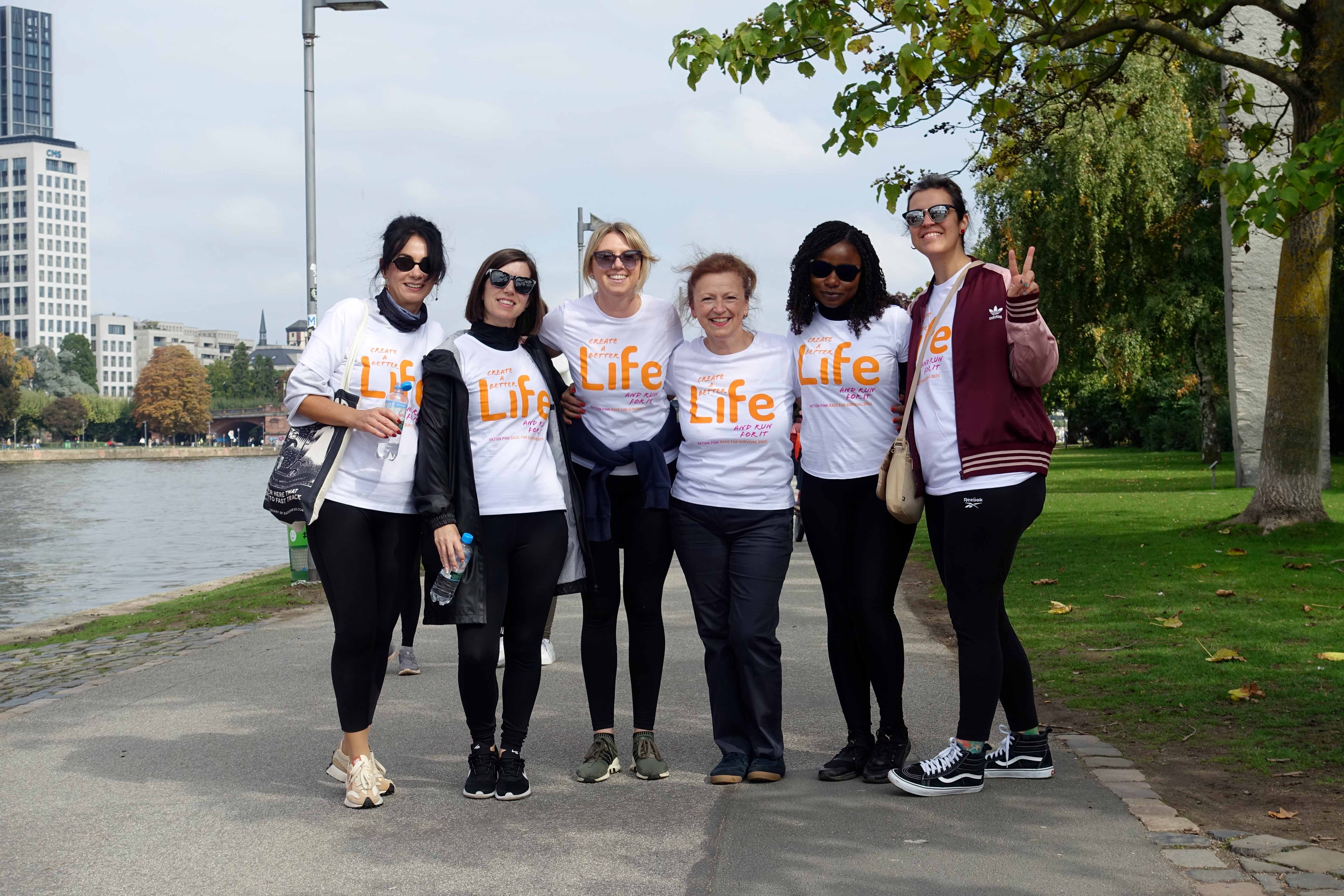 Der 1. Präventionsmarathon in Frankfurt am Main hat den Grundstein gelegt für eine moderne Transformation der Erhaltung der Brustgesundheit und dem 7. Meilenstein unserer erfolgreichen Arbeit. Wir danken der Stadt Frankfurt am Main für 121.000 Euro, der CMS-Stiftung und Stefanie Wismeth für die juristische ProBono-Beratung der Anwälte Dr. Roland Wiring, Dr. Siham Hidar, Dr. Anna Lena Füllsack sowie Prof. Dr. Malte Grützmacher im Wert von rd. 55.000 Euro, der Deutschen Postcode-Lotterie für rd. 25.000 Euro, der Bahn-BKK für rd. 4.500 Euro und SWIFT (Society for Worldwide Interbank Financial Telecommunication) mit Jennie Baisch & KollegInnen für 3.000 Euro Förderung unserer Selbsthilfe-Arbeit.